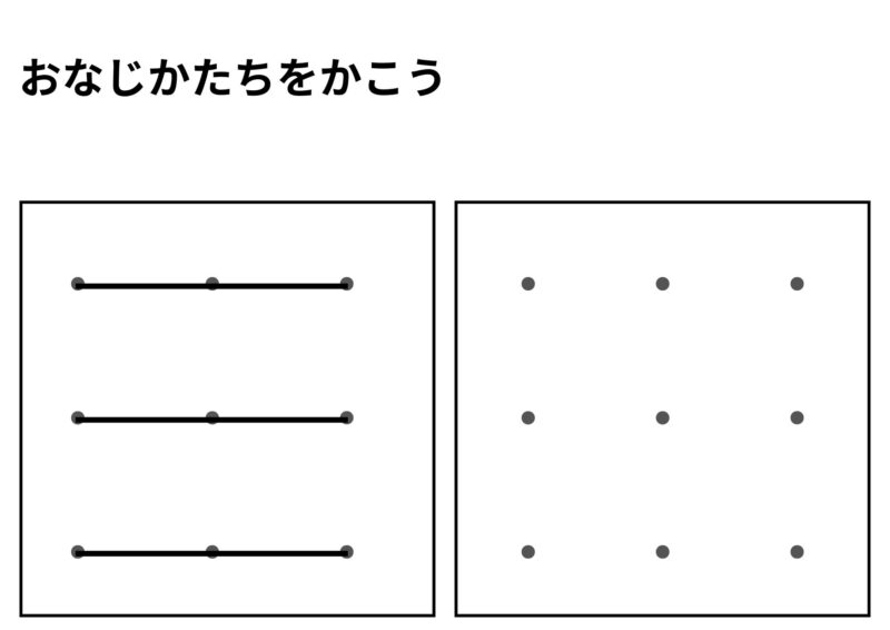 この流れは、目と手を同時に使う練習になります。